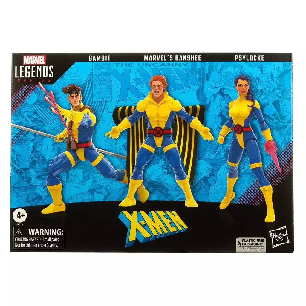 Este set de figuras de acción coleccionables de Marvel a escala de 15 cm está detallado para parecerse a la apariencia de los personajes de Marvel Banshee, Gambit y Psylocke de la portada de Uncanny X-Men #275, con detalles premium y múltiples puntos de articulación. Incluye 13 accesorios, incluyendo manos y cabezas alternativas para Banshee de Marvel, que reproducen su icónica cara de grito sónico. La figura de Gambit incluye un bastón bo, una mochila y manos alternativas con naipes cargados cinéticamente. La figura de Psylocke incluye manos alternativas, efectos psiónicos y una espada psiónica.